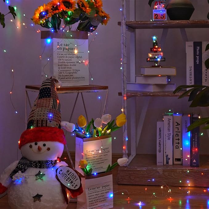- Easy to Shape: The multicolor christmas fairy lights are made of soft wire that can be easily bent and molded in a potted plant, bed, display case, wall, ceiling, Christmas wreath, window, and outdoor. DIY into various shapes, becoming a designer in your life is something to look forward to