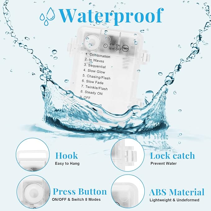 - Fairy Lights Battery Power, easy to hide: Fairy lights battery operated include the transparent battery box with a hook that is easy to hide in your design. Decoration behind your bedroom or sheer curtains, patio, restaurant. Create a fairytale atmosphere in Weddings, Parties, Christmas, Halloween