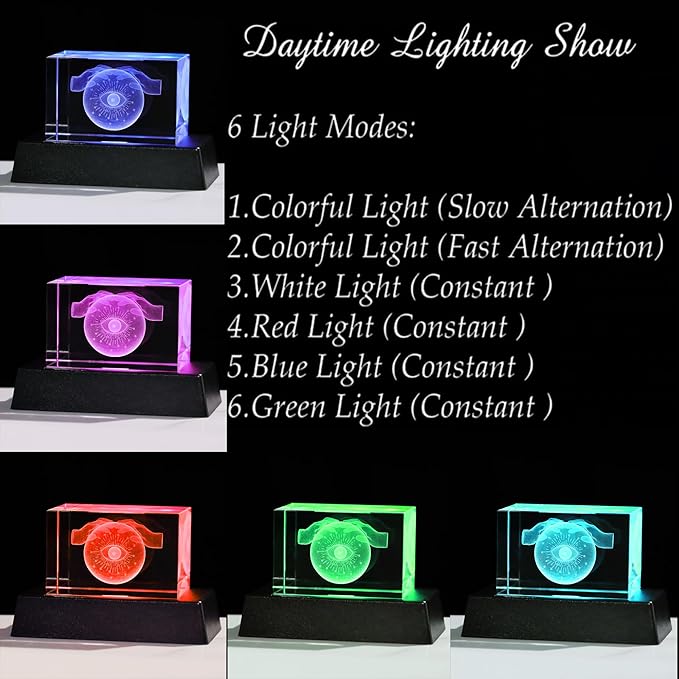 - EASY TO USE & PERFECT GIFTS - Touch the switch to change the light mode and turn it ON or OFF. Package include 1 x Crystal,1x Led Base,1 x USB Cable,1 x Gift Box,1 x cloth,1 x Gift Card. Well packaged and already to be a gifts.