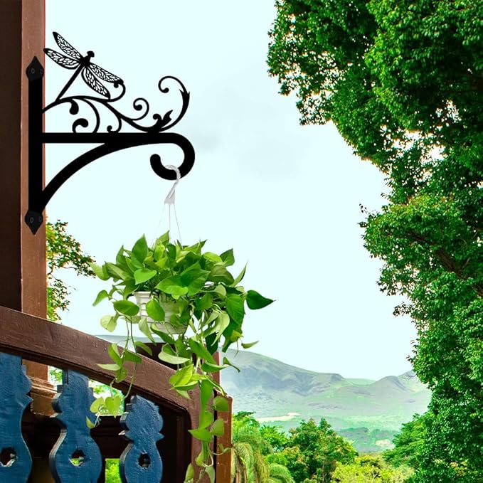 peacoblue Iron Plant Hangers Hooks for Outdoor Indoor Hanging Plants Flower Fern Pots Lantern Bird Feeder, 12"x15" Weather Resistant Metal Wall Holder for Porch Garden Farmhouse(Vintage Dragonfly)